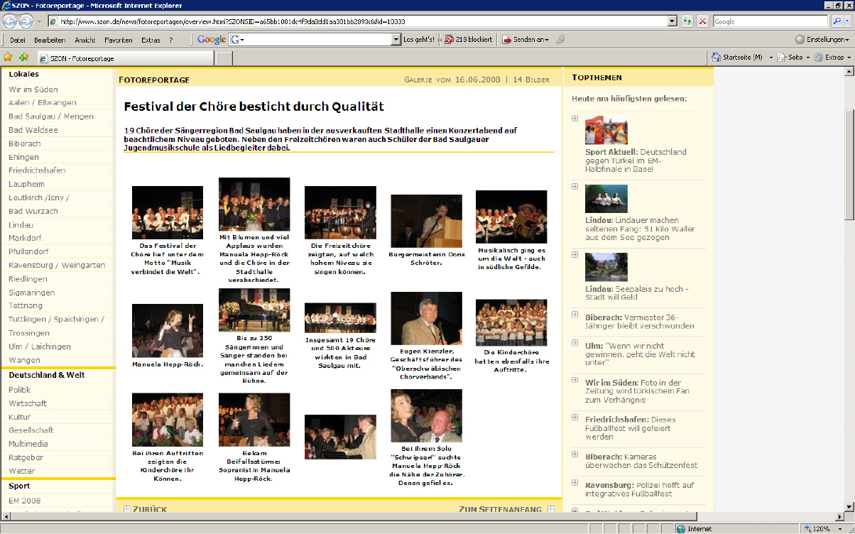 Bericht Schwäbische Zeitung 16. Juni 2008