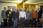 Eugen Kienzler (links) mit den geehrten Sängern von li. nach re.: Karl Rothmund, Franz Schelkle, Alfred Gresser, Hans Kuom, Wolfgang Moosherr, Albert Arnold, Horst Kohler, Otto Uhl, Bernd Petasch, Ernst Engenhart, Paul Biesel, Erwin Mock.