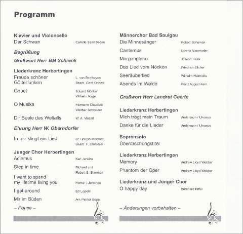 Die ersten 4 Lieder (s. Programm) wurden 5 Stunden zuvor beim Chorwettbewerb aufgeführt und von der Jury bewertet.