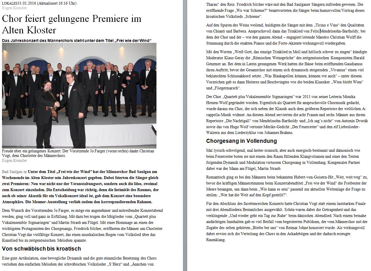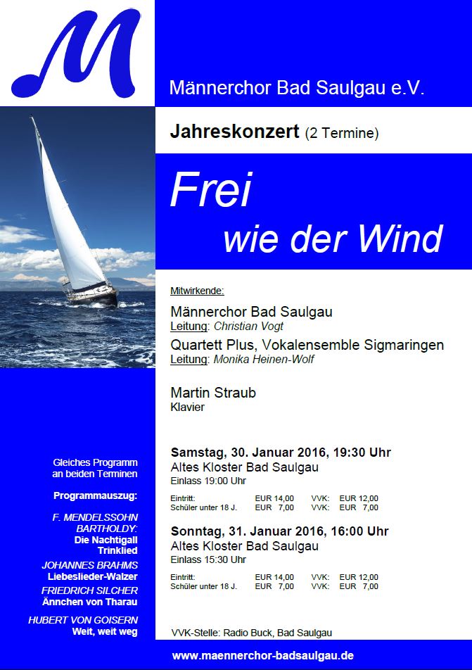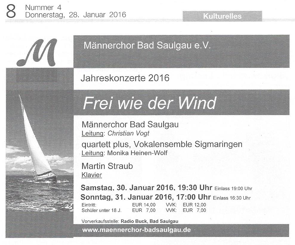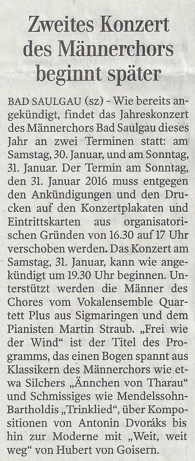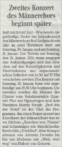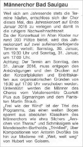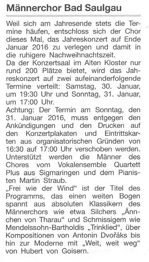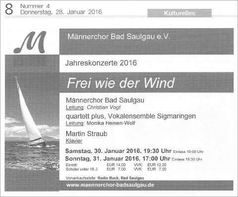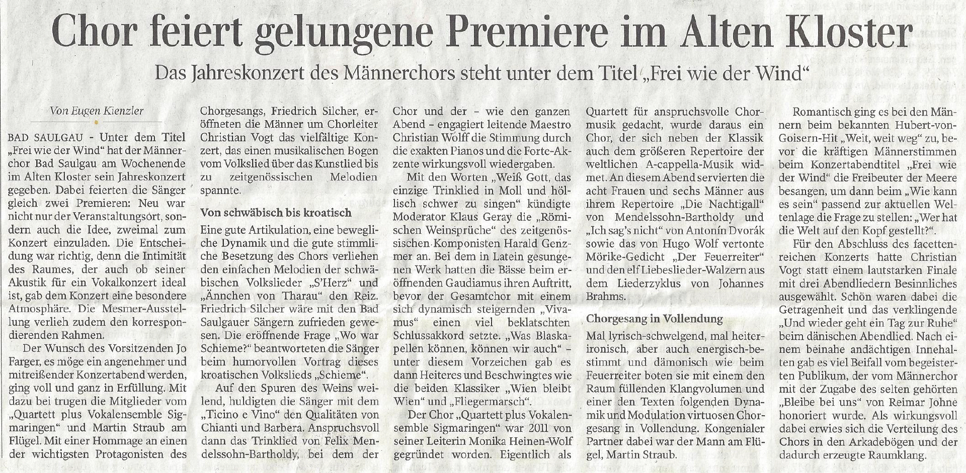 Sehr geehrte Damen und Herren, liebe Freunde des Männerchores Bad Saulgau.